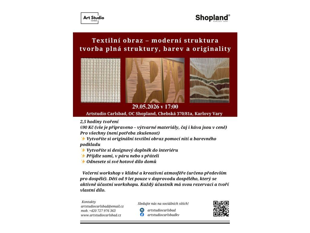 Zveme vás na kreativní workshop, kde si vytvoříte vlastní textilní obraz – originální dekoraci do interiéru.